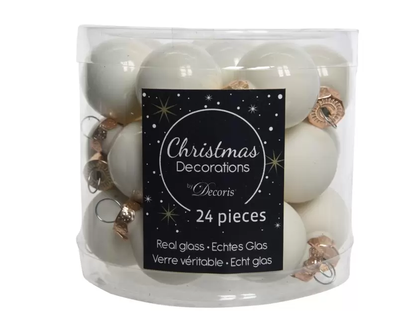 Kerstbal glas emaille-mat 24 stuks a 2,5 cm. Wolwit.