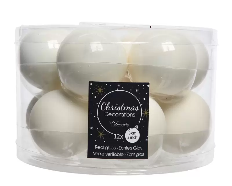 Kerstbal glas emaille-mat 12 stuks a 5 cm. Wolwit.