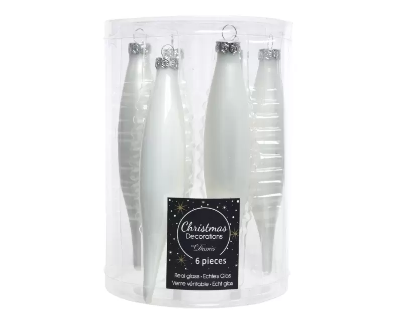 Pegel glas emaille-mat 6 stuks a 15 cm. Winterwit