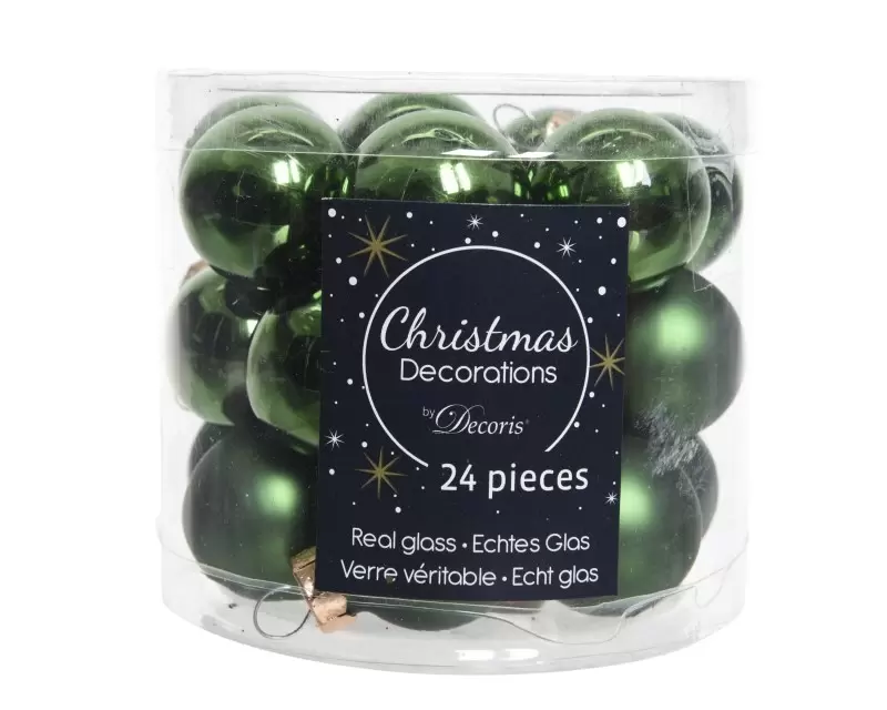 Kerstbal glas glans-mat 24 stuks a 2,5 cm. Dennen groen.