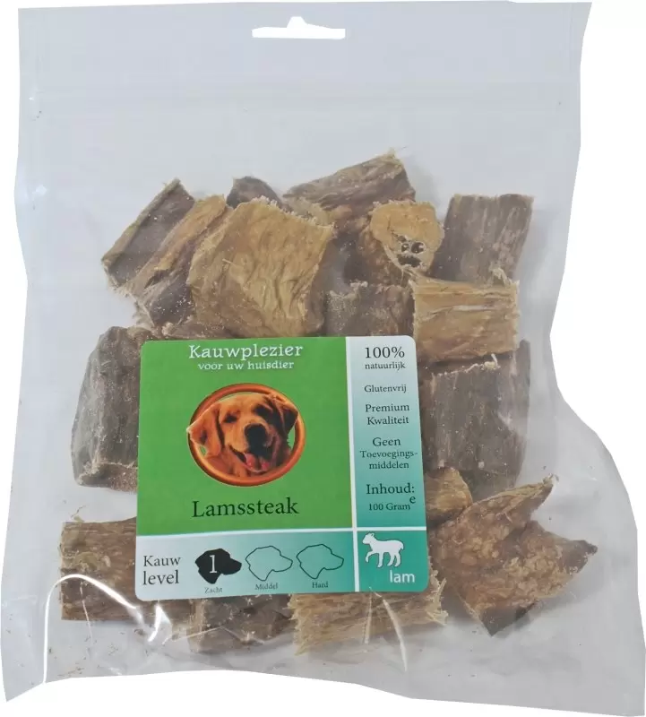 Natuurlijke snack lam, zak lamssteak 100 gram.