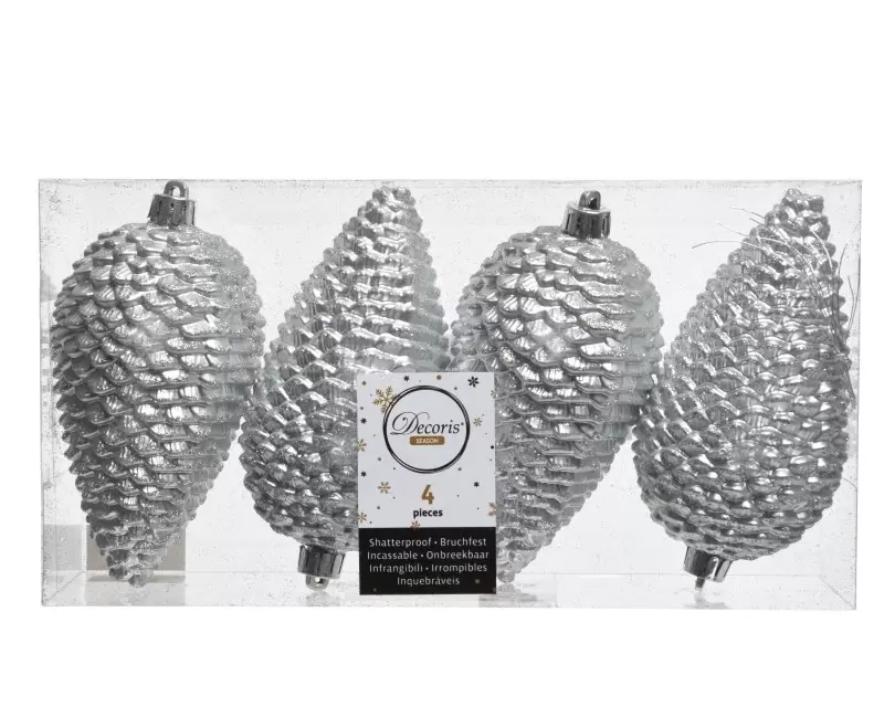 Schrijf zelf een recensie over "Denneappel plastic 4 stuks 70 mm Zilver"
