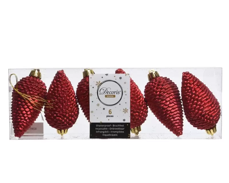 Schrijf zelf een recensie over "Dennenappel plastic 6 stuks 45 mm Kerstrood"
