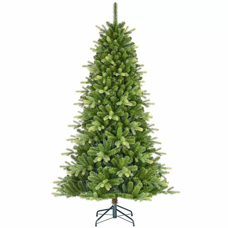 Volle boom met een scharnieren constructie van metalen takken en stam. Zodra je de boom neerzet, vallen de takken op zijn plaats. Alleen nog uitvouwen en klaar! Excl. versiering en verlichting.