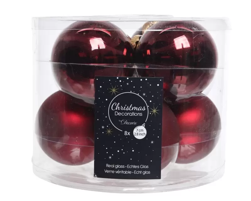 Kerstbal glas glans-mat 8 stuks a 7 cm. Ossenbloed
