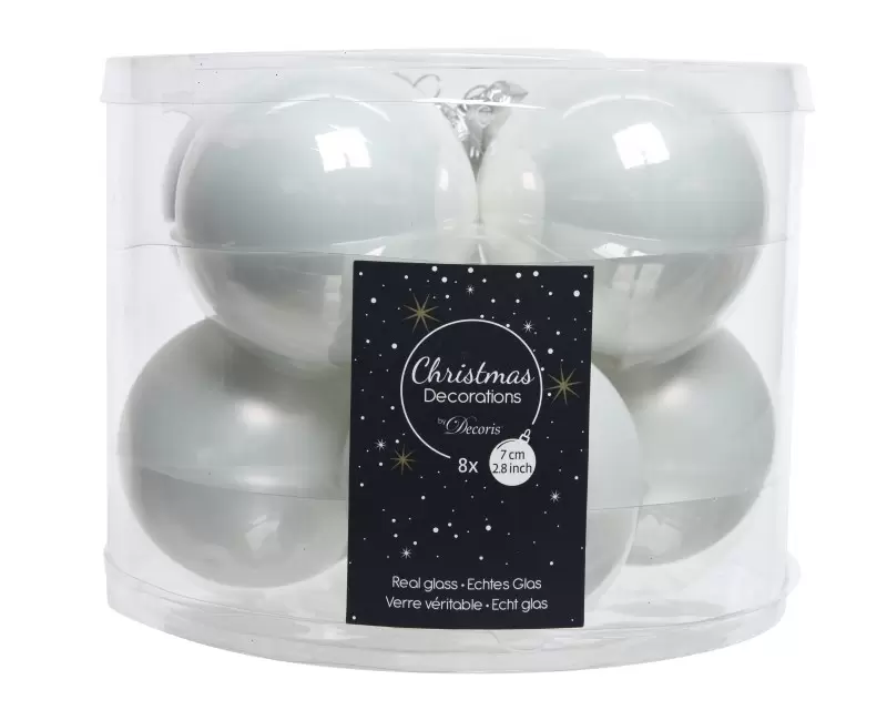 Kerstbal glas 8 stuks 70 mm Winterwit