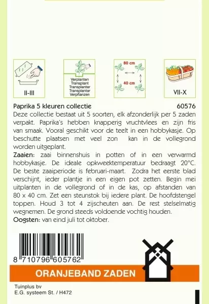 Bent u op zoek naar Paprika Collectie Oranjeband? Bij Tuincentrum Kolbach in Rijswijk (Brabant) vindt u Paprika Collectie Oranjeband en nog vele andere tuinproducten! Bezoek ons webshop of kom langs in het tuincentrum voor meer informatie over Paprika Collectie Oranjeband.