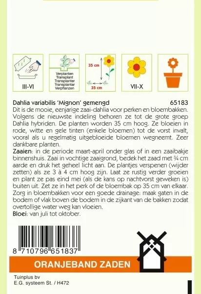 Schrijf zelf een recensie over "Dahlia, Mignon gemengd Oranjeband"