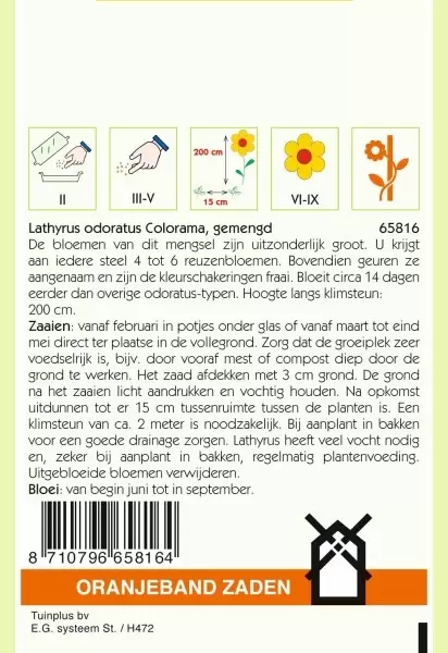 Schrijf zelf een recensie over "Lathyrus, Reuk- of siererwt Colorama gemengd Oranjeband"