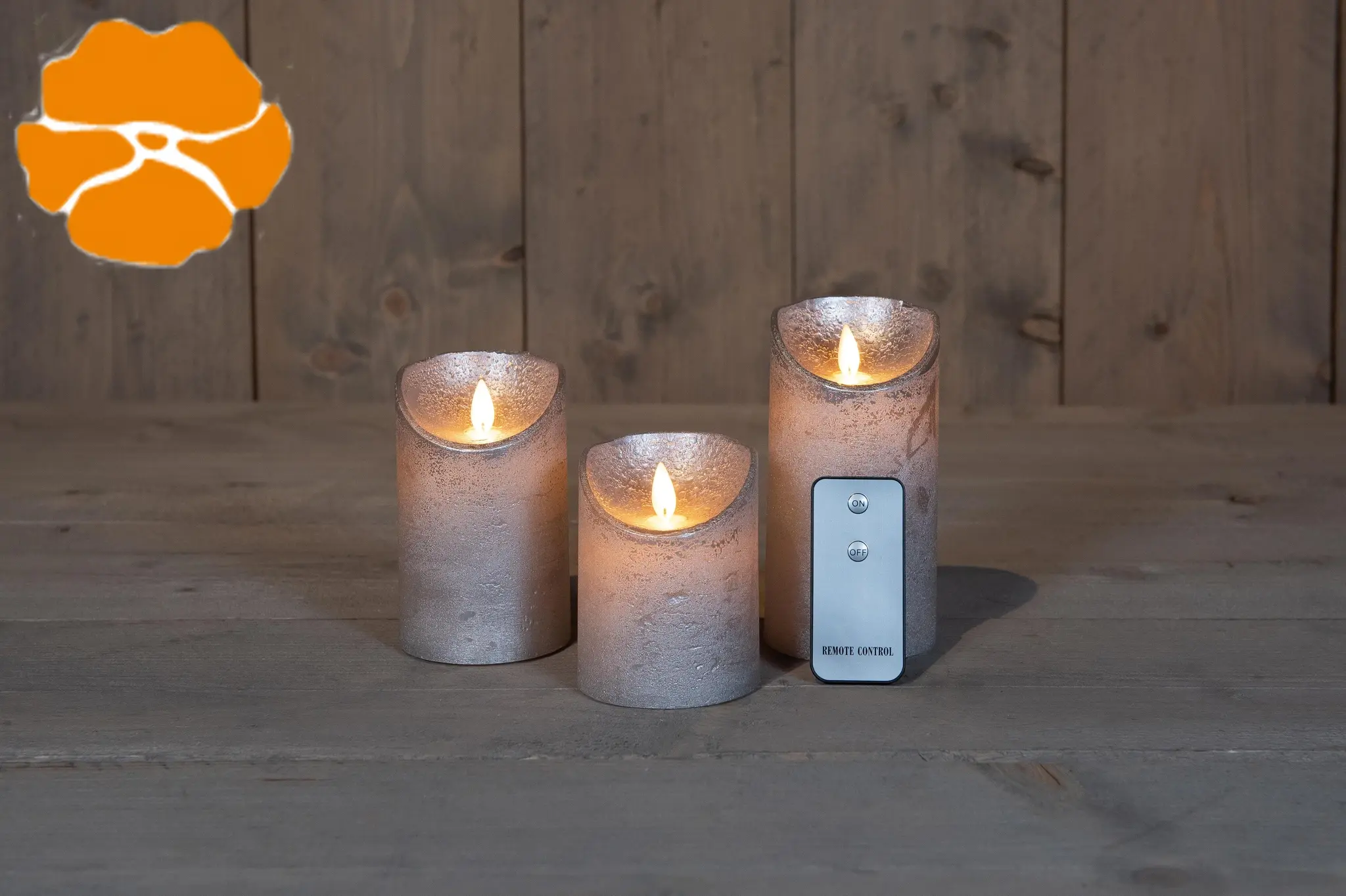 3ST KAARS ZILVER WAX RUSTIEK BEWEGENDE VLAM 7,5X10/12,5/15CM - 3X3AAA INCL. AFSTANDSBEDIENING