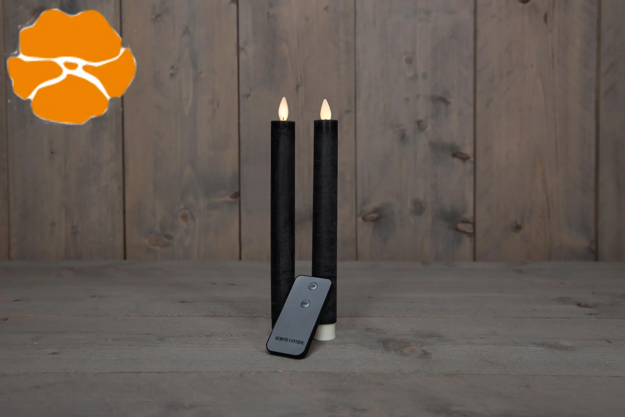 2ST ZWART RUSTIEK WAX DINERKAARS 23CM BEWEGENDE VLAM MET AFSTANDSBEDIENING 2X2AA