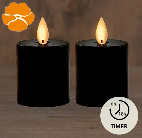 2ST KAARSEN ZWART BEWEGENDE VLAM 4,5X8CM 2X2AA/TIMER