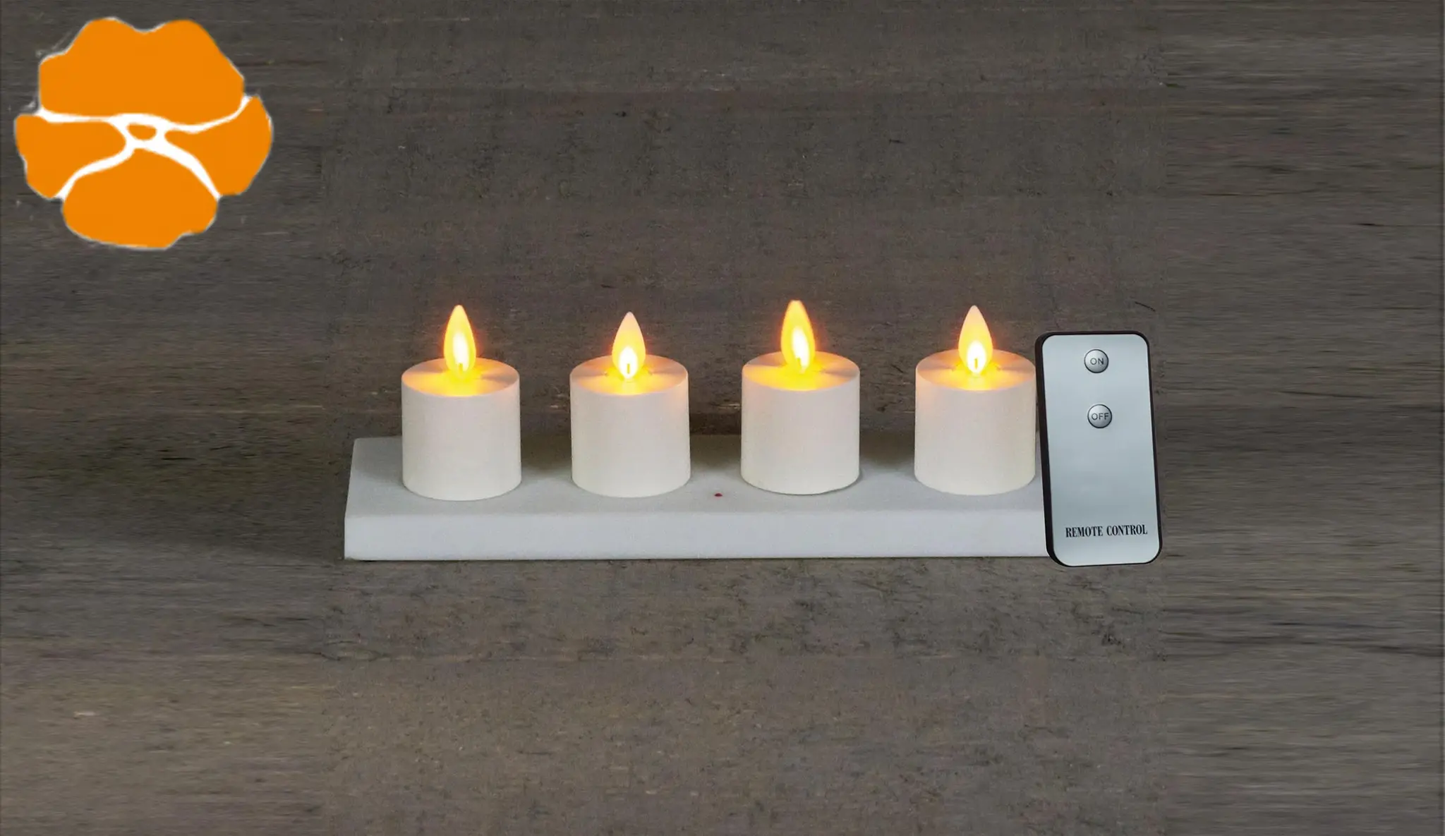 SET 4ST OPLAADBARE BEWEGENDE VLAM THEELICHT WIT DIA 3,8X6CM INCL. INDUCTIE OPLAADSTATION EN AFSTANDSBEDIENING