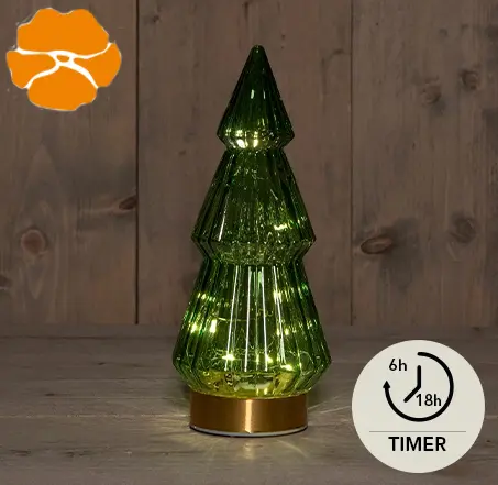 GLAZEN BOOM GROEN 10L MET GOUDEN VOET 10X23,5CM 3XAAA MET TIMER
