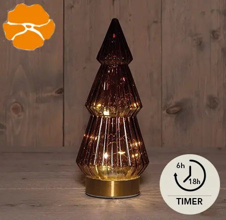 GLAZEN BOOM BORDEAUX MET GOUDEN VOET 10X23,5CM 3XAAA MET TIMER