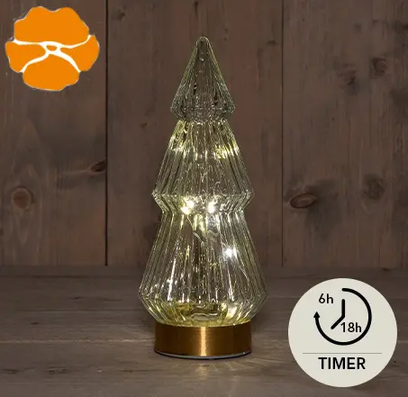 GLAZEN BOOM HELDER MET GOUDEN VOET 10X23,5CM 3XAAA MET TIMER