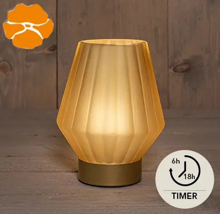 GLAZEN LAMP MAT GOUD MET GOUDEN VOET 12X17CM 2XAAA ON/OFF/6U TIMER