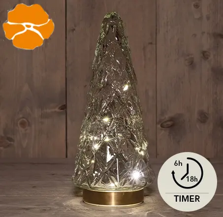 GLAZEN BOOM HELDER MET GOUDEN VOET 13X28,5CM 3XAA MET TIMER