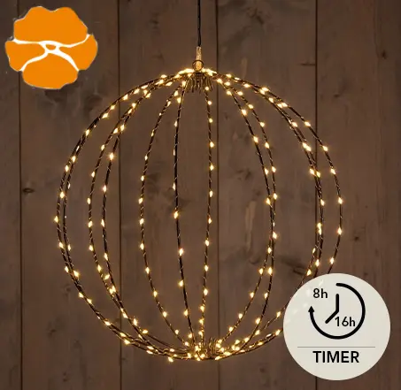 BAL ZWART 40CM/ 192 LED CLASSIC WARM - 5M AANLOOPSNOER - AAN / DIMMER / 8/16U TIMER / UIT IP44 TRAFO
