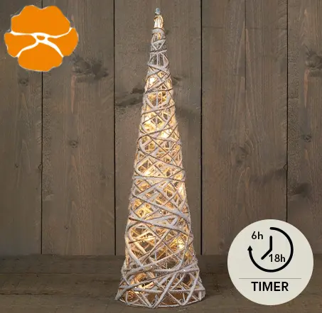 KEGEL 60CM JUTE/KATOEN/GLITTER 15 LED WARM WIT / 2XAA ON/OFF/6U TIMER