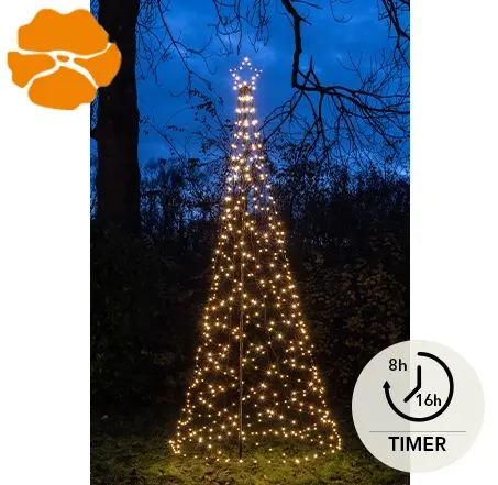 BOOM MET STER INCL PAAL Ø100X320CM/ 480 LED CLASSIC WARM 8/16UUR TIMER - INCL. 8X GRONDPEN - 10M AANLOOPSNOER ZWART - IP44 TRAFO