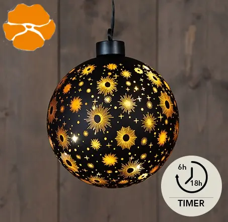 GLAS BAL MAT ZWART KOSMOS 12CM / BEWEGEND LED WARM WIT 2XAAA MET TIMER