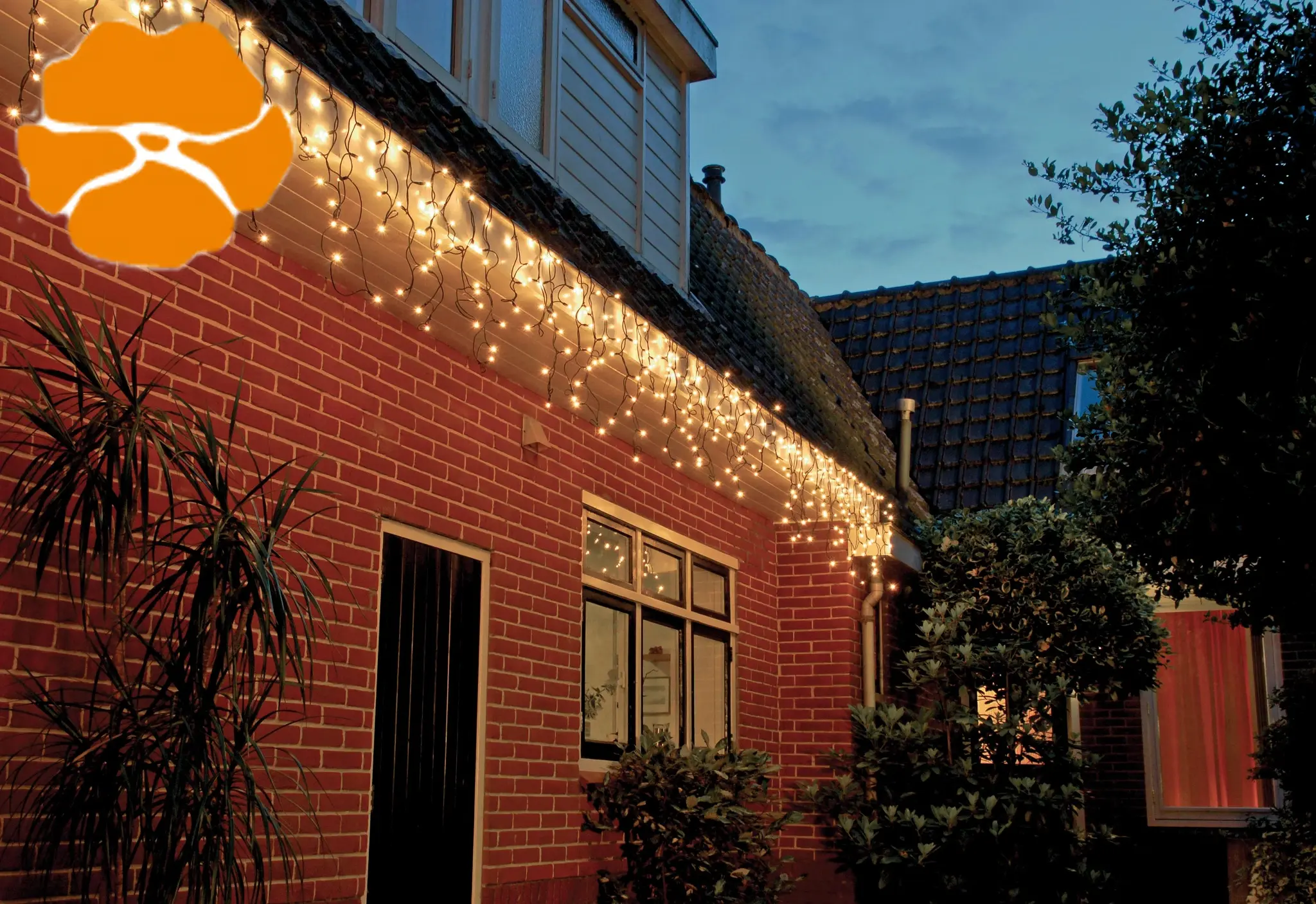 CONNECT DE LUXE ICICLE LIGHTS 100LED WARM WIT 400X35CM 30 STRENGEN, RUBBER KABEL ZWART